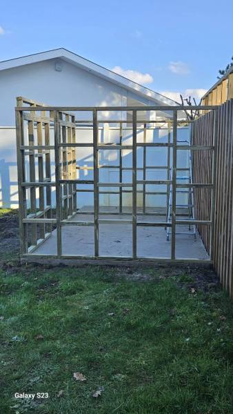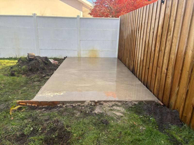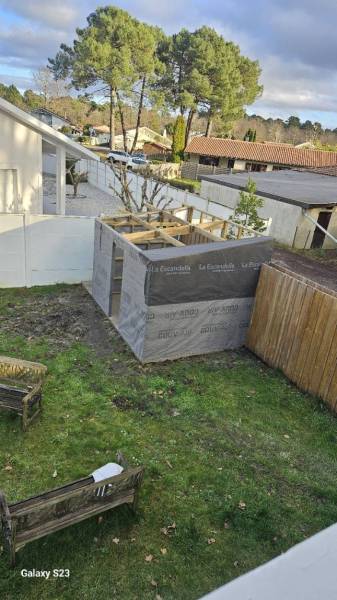 Pour assurer sa stabilité et sa durabilité, l'abri repose sur une chape en béton solide, réalisée avec soin. Cette base protège la structure de l'humidité et empêche tout affaissement du sol. L'entreprise CARRELAGE et BOIS, située à Marcheprime, a été chargée de la mise en œuvre.
