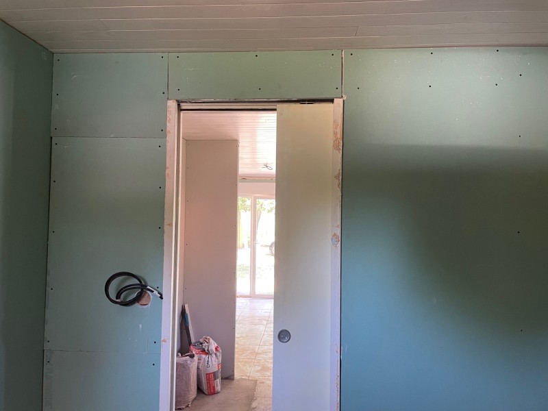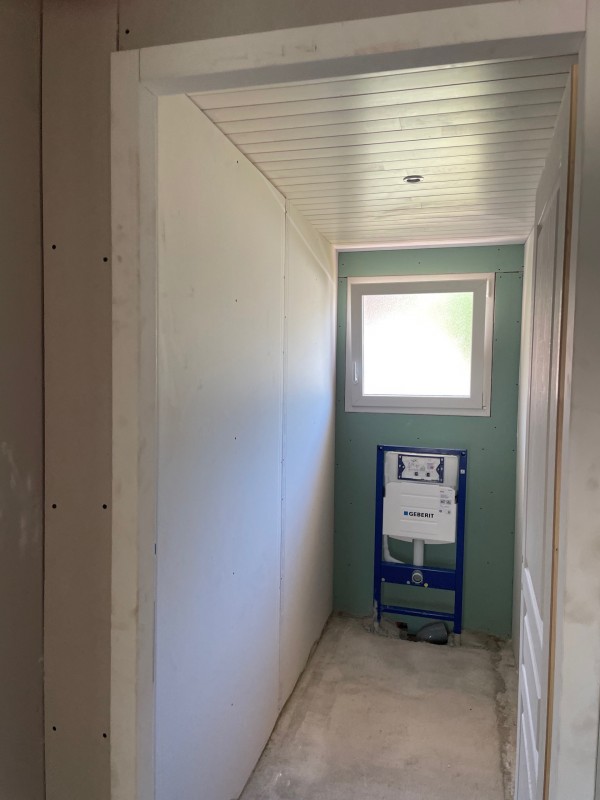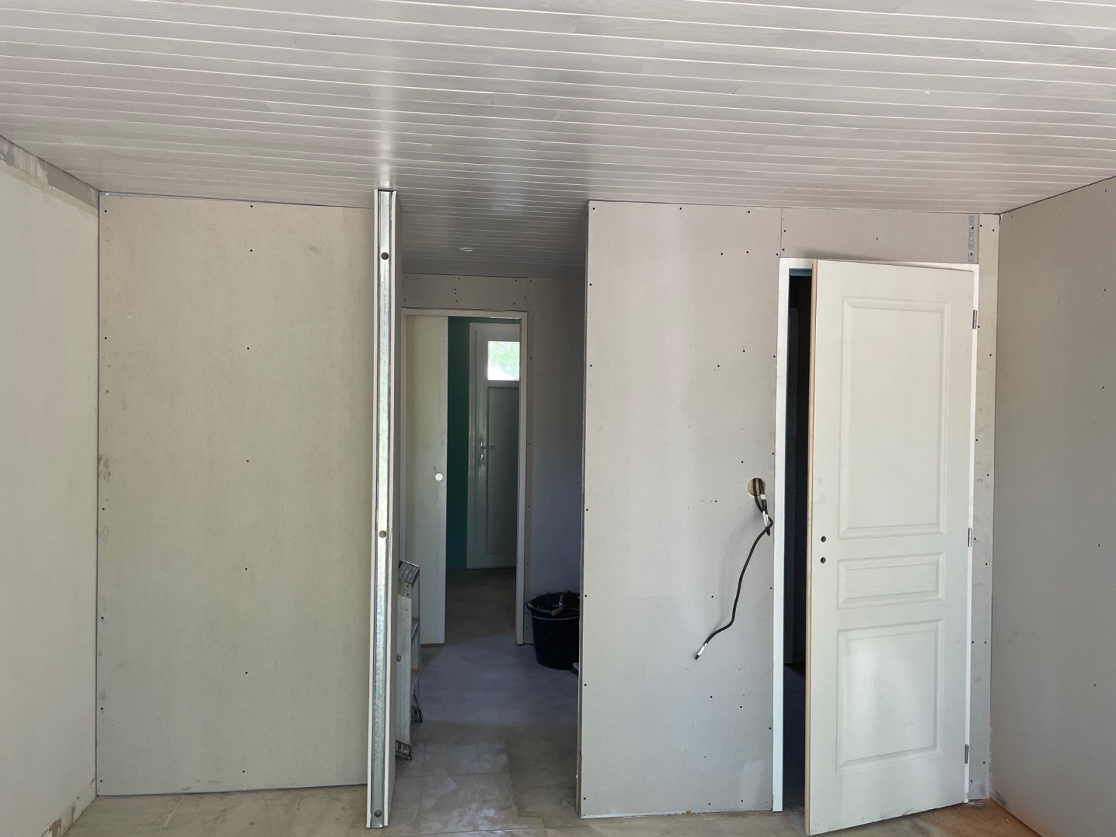 J ai réaliser le doublage en ossature rail avec appui intermédiaire puis fait lez cloison aussi en ossature métallique et ba13 avec la pose des porte puis la réalisation des chapes lisses