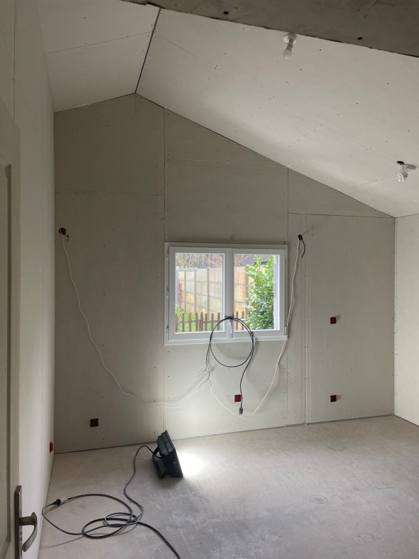 L’entreprise Jimenez Carrelage et Bois à réaliser des doublage de mur faux plafond et cloison dans une extension de maison.