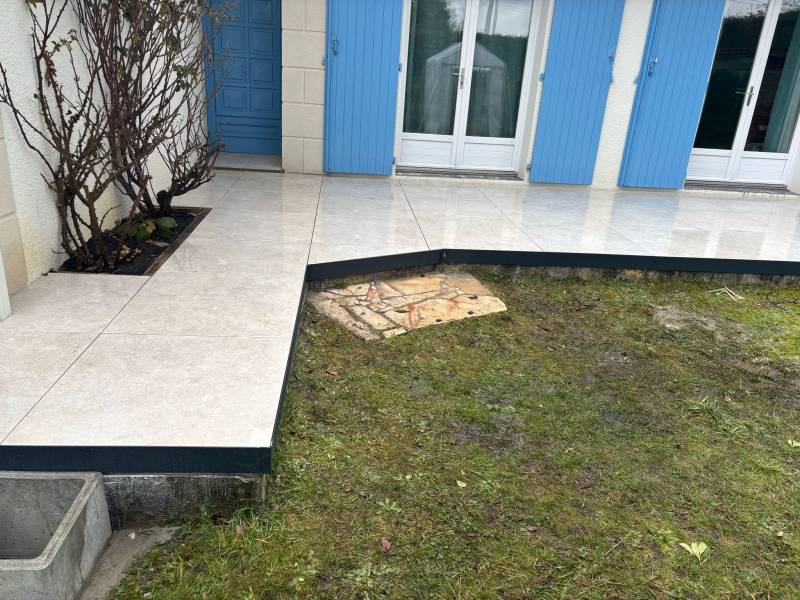 La pose des carreaux grand format 80x80 a été réalisée avec minutie, en veillant à un alignement parfait et à des joints réguliers pour une finition soignée. Chaque détail a été pris en compte pour offrir un résultat impeccable. Les carreaux grand format confèrent à la terrasse une allure contemporaine et épurée. Ils offrent également :