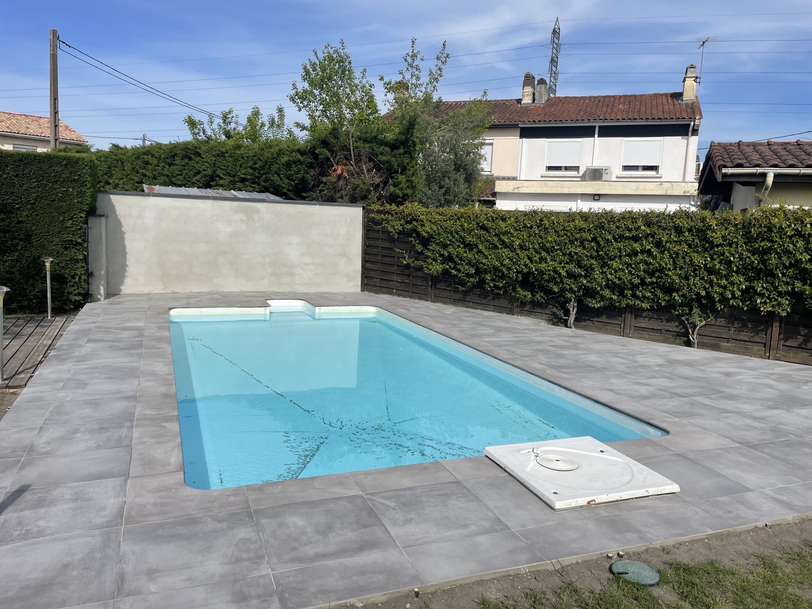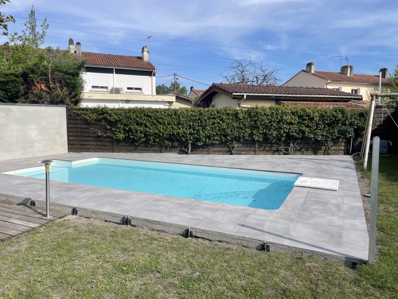L’entreprise Jimenez, Carrelage de Bois a réalisé la poste de Carrelage sur une dalle béton extérieur terrasse autour de Piscine à Pessac proche bordeaux.