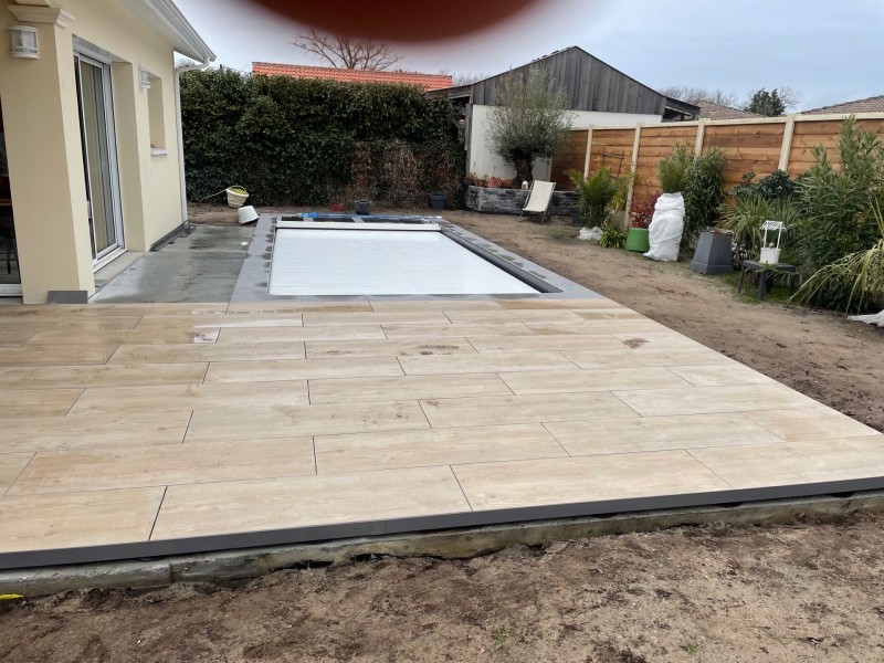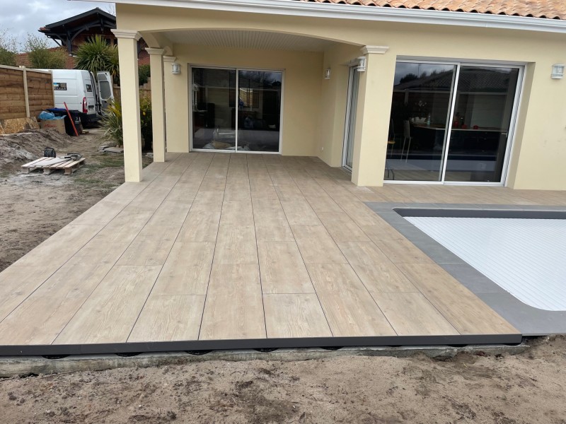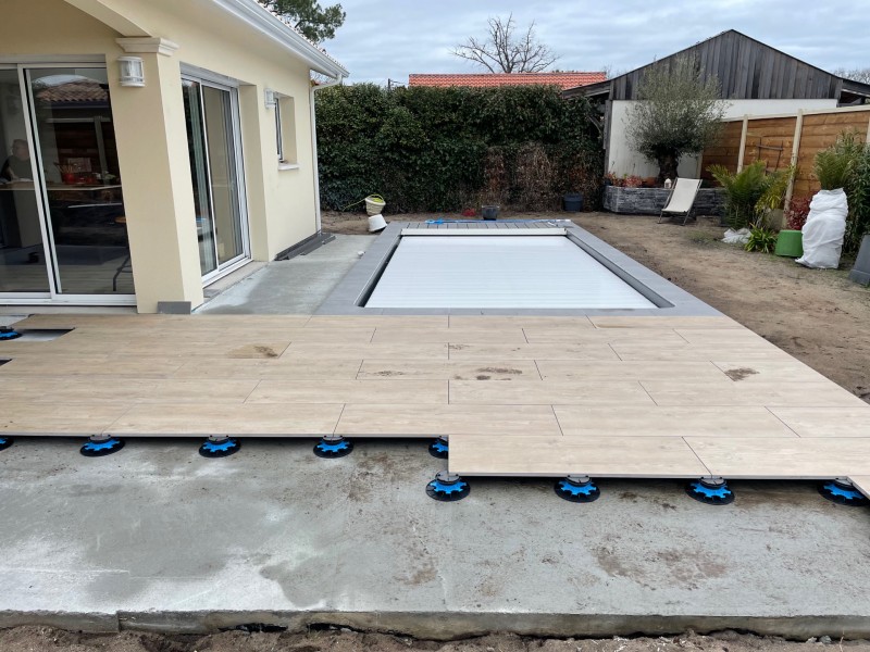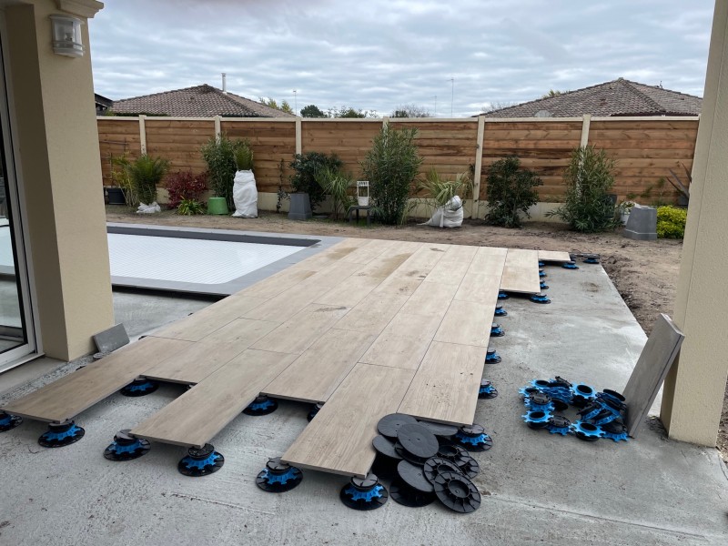 L’entreprise Jimenez Carrelage et Bois à réaliser la pose de carrelage sur plots grand format sur une dalle béton que nous avons réalisé